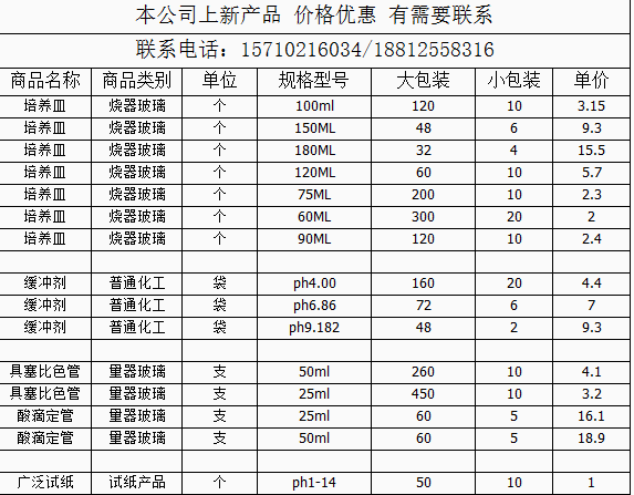 本公司新增(磷酸盐缓冲液0.1M pH6.8 、 PBS缓冲液0.01MpH7.2-7.4、 4%多聚甲醛溶液、10%中性福尔马林固定液、DEPC处理水、无菌去离子水 10%SDS溶液 1XTBS...